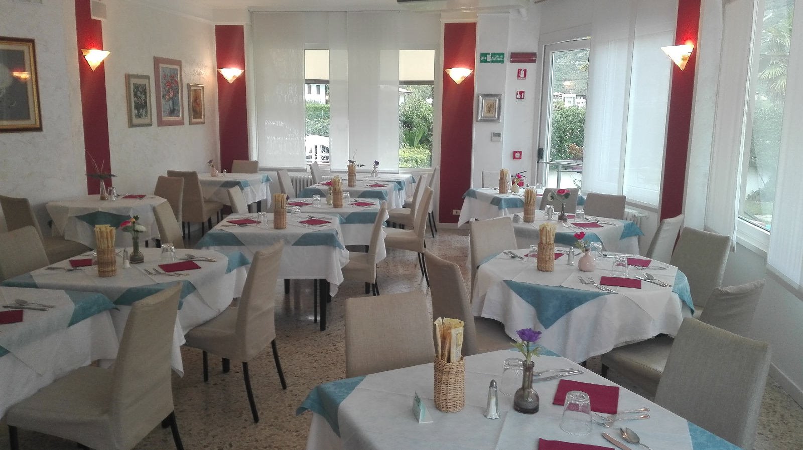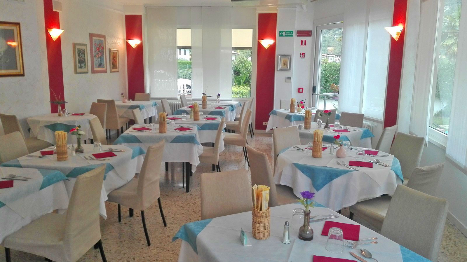 Das Hotel liegt ruhig und sonnig, 100 m vom See entfernt. Die Zimmer verfügen über: Sat-Farb TV, Safe, Fön, Durchwahltelefon und Panoramabalkon. Die Küche bietet ein reichhalltiges Büffet am Morgen und geschmackvolle Menüs mit Gemüsebüffet am Abend.